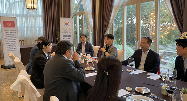 사진설명 : 6월16일 서울 강남 라움아트센터에서 만찬을 가지며 협약 내용 이행에 대한 논의를 하고 있다. 이날 만찬식에는 민병도 페이버스그룹 회장과 티웨이항공 박일성 임원, 키르기스스탄 해외시민고용센터 센터장 아크맛베코프 쿠반득 아크맛베코비치 등이 참석했다.