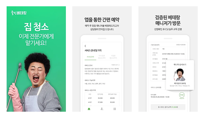 클린베테랑은 고객 맞춤형 서비스를 제공하는 토탈 홈케어 서비스 플랫폼입니다. 가사/사업장청소/이사·입주청소/공간 소독 등 주변 환경의 청결과 위생 유지하는 서비스와 심부름/구매대행/돌봄 등 우리 생활과 관련된 편의 서비스를 제공합니다. 앱을 통해 쉽고 편리하게 이용 가능하며, 클린베테랑의 노하우가 담긴 실무/CS교육을 이수한 매니저가 방문하여 최고의 서비스를 제공합니다.