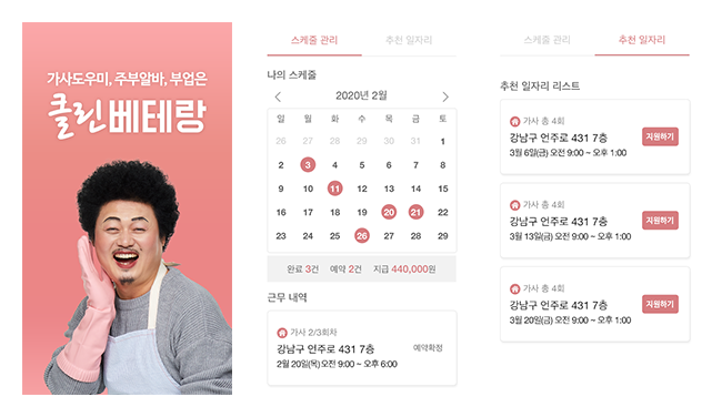 가사서비스 (단기,정기)클린베테랑 전용 매칭 시스템을 통한 고객에게 맞는
