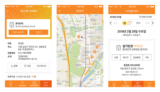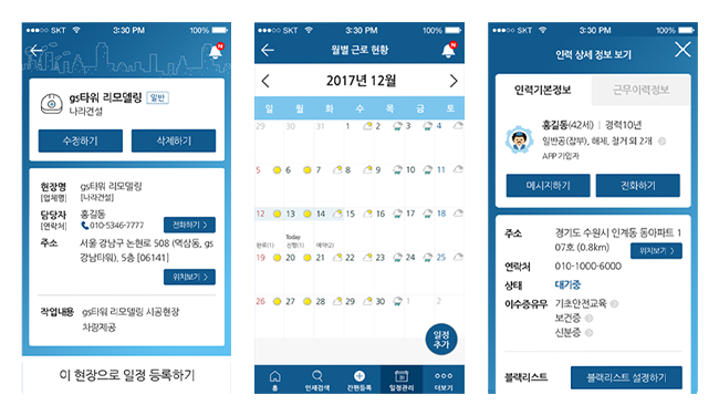 현장 및 인력관리여러 개의 현장 등록 및 인력배치가 가능하며,